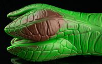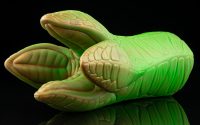 For his colourations, we wanted some variety. Creature’s signature is a metallic, earthy-looking bronze, with a green layer rotocast over the whole toy. It lends itself to a gorgeous, alien-plant-looking toy that has loads of contrast between details. We also made Triffid, a floral-looking fade between sparkling green and pink, and Nebula, a blue-and-pink rotocast over white silicone.