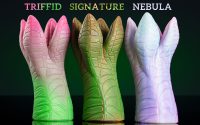 After hauling your equipment this deep into the cave, the puddle of goop practically advertised that it wasn’t to be touched. Even less so, given the way it rises out of this random crack in the earth like it's bubbling up from the aether... But as a strand of it stretches between the pool and your fingertip, hindsight is 20-20. The surface of the liquid shivers, then darkens as a figure approaches from underneath. Breaking the surface, four green, petal-like fronds slither into the air, followed by the long, tentacle-esque body they belong to, each petal quivering, nudging the air as though testing it for the first time. They spread and flex, the four fronds looking like the leaves of a plant - although thicker, more substantial, as though made from flesh. As you take a step back, the fronds snap to face your direction, the eyeless entity immediately aware that you’re in close proximity.
