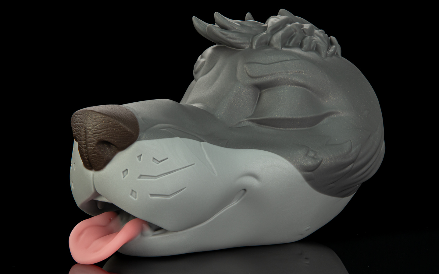 We couldn't leave our other canids out of this! Here's Ranger's Maw! The classic grey wolf dark fur with a lighter undercoat. Dark coffee nose with a peach tongue.