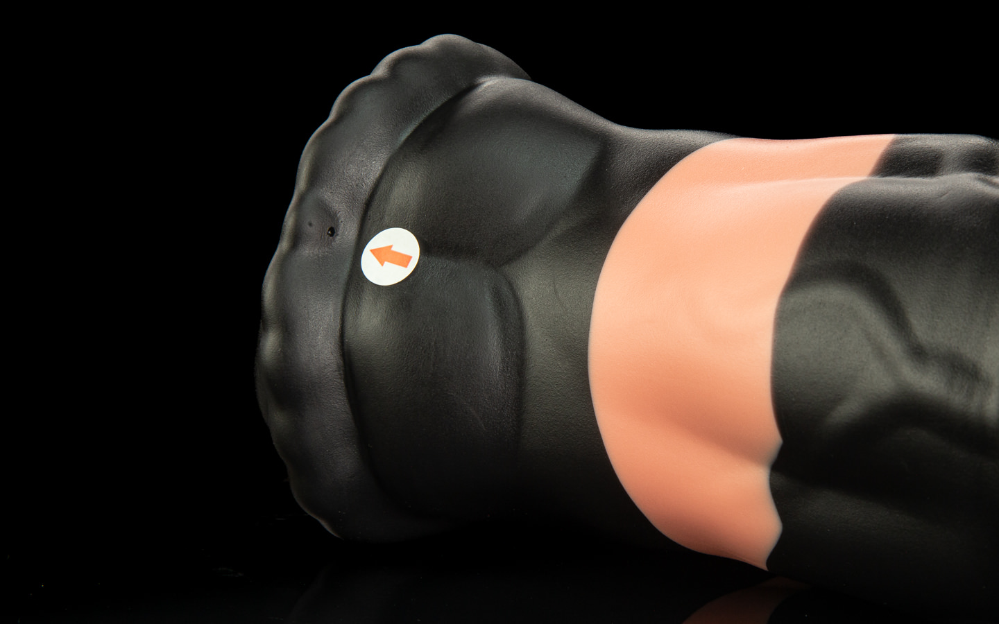 The entrance in his flare quickly opens up into a broader urethral tunnel, which is smooth, but lightly rippled with a delicate skin texture. If you slip past his medial ring, you’ll feel it squeeze over you before opening up further into his depths. By the time you hilt, his broad, flat flare presses squarely to your crotch.