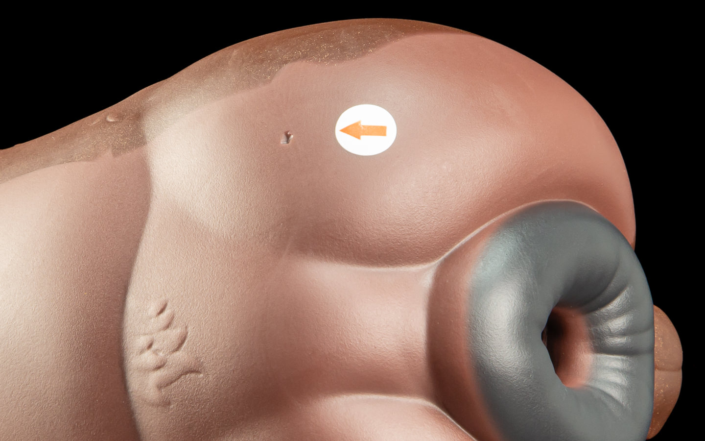 Jack's butt is the most spacious penetrable we've made to date! After you push through that thick, plush ring, he quickly opens around you, his rippled insides giving you a roomier, more relaxed sensation. That ring - something of a 'donut' - keeps hugging you all the way to your base.