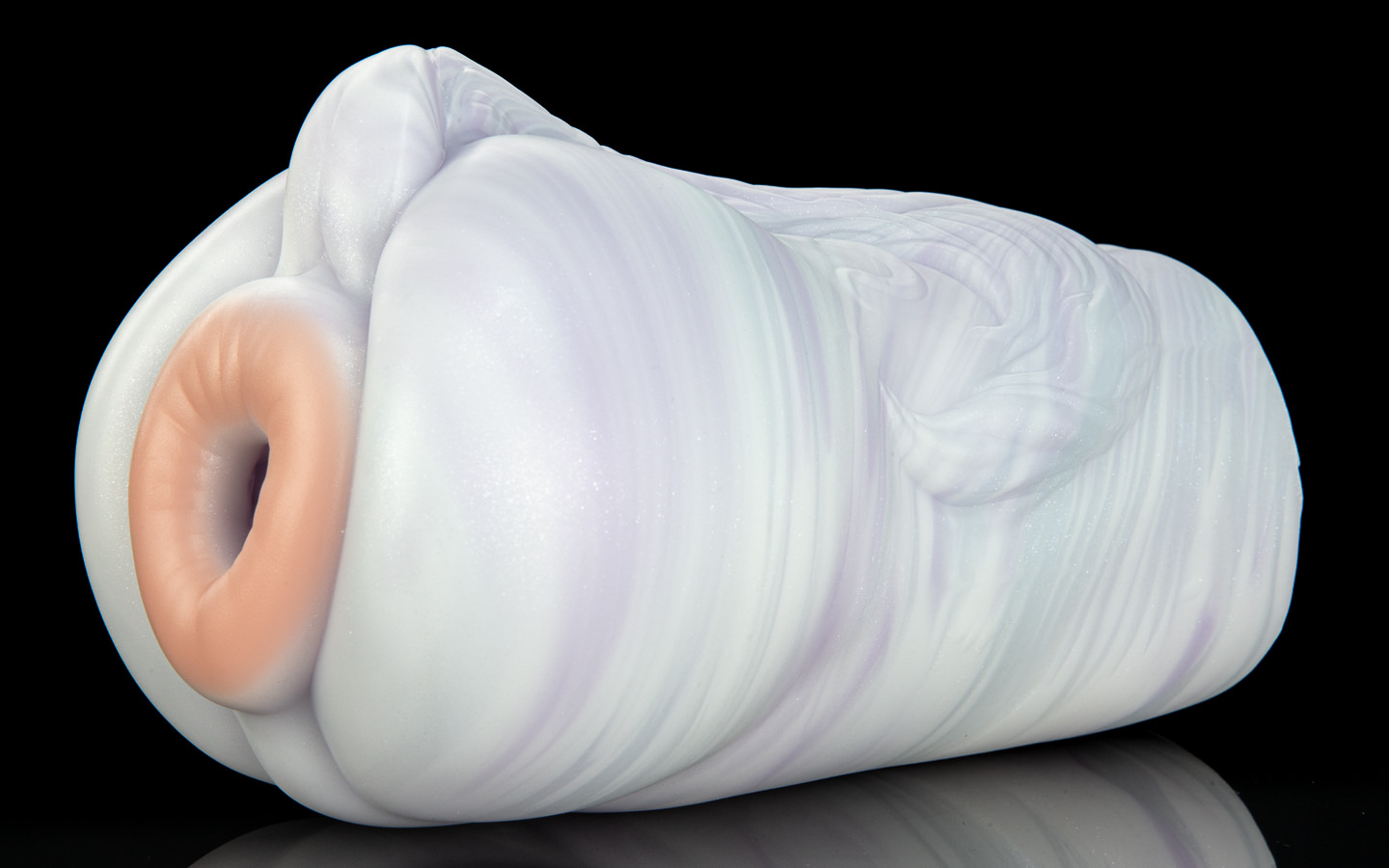 We've delivered three main colourations for Jack's butt. The first, a unicorn-esque look, with a swirl of pearlescent blue, pink and white. Jack's signature is cast in three stages, first the black donut, then his cheeks and belly, and finally a main body with a fuzzy 'sheen' to it. We're also offering him in Silverfox, with a lovely, deep black hole and belly plus a swirled grey-on-black body!