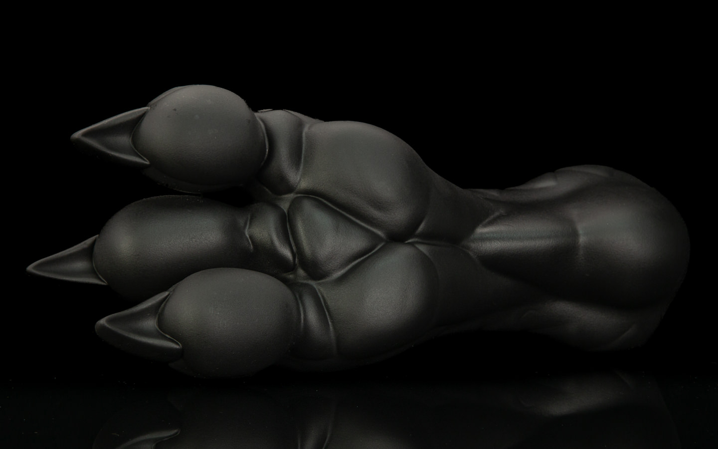 In the final product, we think we got pretty close to the real thing! His toes compress and deform to the touch in a lovely way, the body/ball of the foot has a sturdy firmness to it, and the scale and tendon details strewn up and down him make for a luxurious feel. If he were a human, he'd be about a 13 shoe size - in their resting position, the toes and pads are wide enough to completely cover your eyes. It really is the closest you can get to a dragon’s hindpaws.