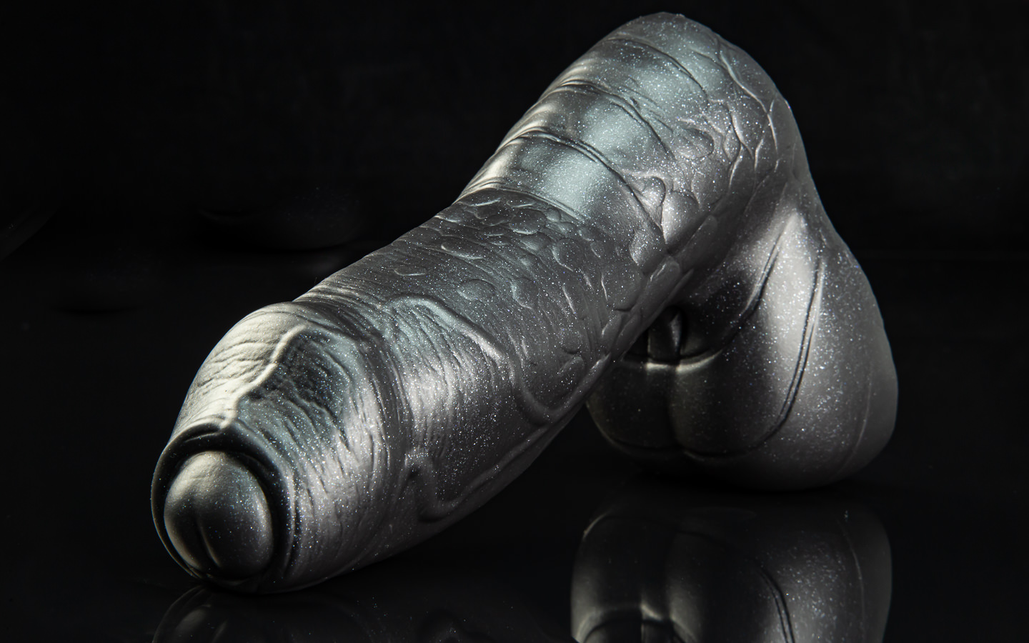 The wrinkles then transition to a scaled texture further down, making him more interesting to explore when hilted; his plated balls make a good place to sit once you’re at the bottom!