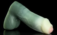How long has passed while you were watching him throb? Definitely longer than is polite. You gulp and glance up. Nile is watching you. He’s watching you stare at his crotch. The same hand that popped the button on his fly fiddles around and finds his zipper. The fabric gives up the fight as Nile’s cock surges upwards into the air. It’s only half-hard, and it’s already too thick to believe. He’s got thin foreskin that’s struggling to contain the bulbous head at the tip. A thin dribble of liquid hits his belly scales and shines brightly in the sun.
