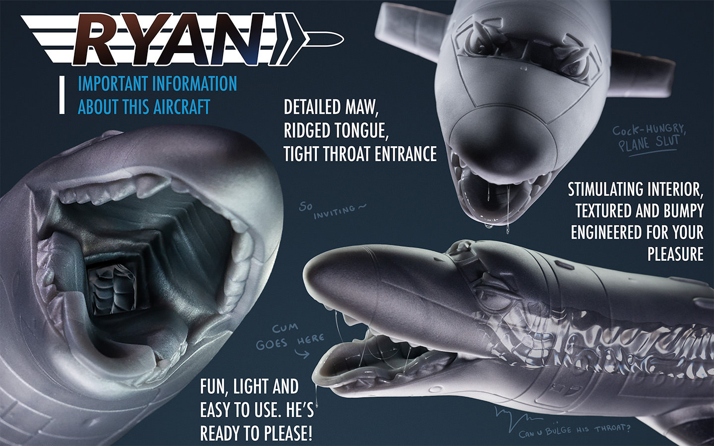His runway is clear and he's ready to receive. Ryan's maw hangs partially open, leading down into a soft, mechanically textured throat which propels you into blow job experience that doesn't hold back! His coiling channels hold you close n' suck you dry.