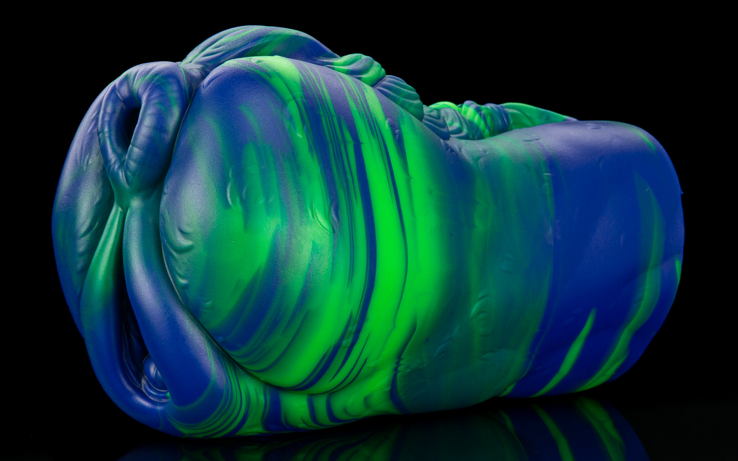 FLOP. Twelve inches of silicone horse dildo slap against the sheets before your eyes.