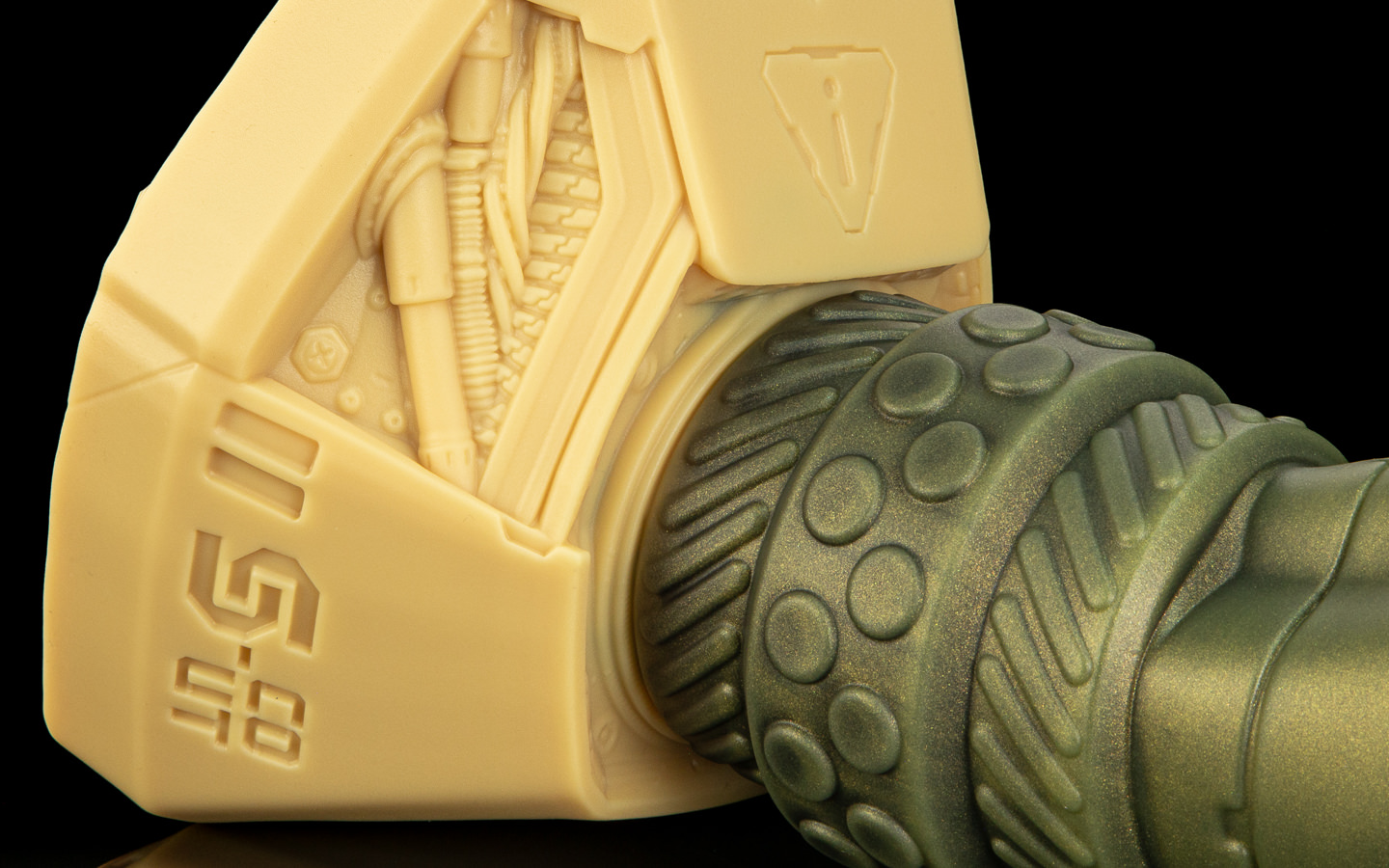 Milo worked methodically; removed the blanking plate from Scout’s ventral port, routed the purpose-built cables - power, data, hydraulic lines. As each connection seated, the shaft responded in stages, first a cyan glow traveling up the length, then internal coils warming it against Milo’s gloved paws. Then, a distinct flex and pulse when the last hydraulic quick-connect snapped home. It was kind of uncanny - despite looking obviously synthetic, it had an organic feel to it. The lynx felt an unexpected heat bloom between his legs.