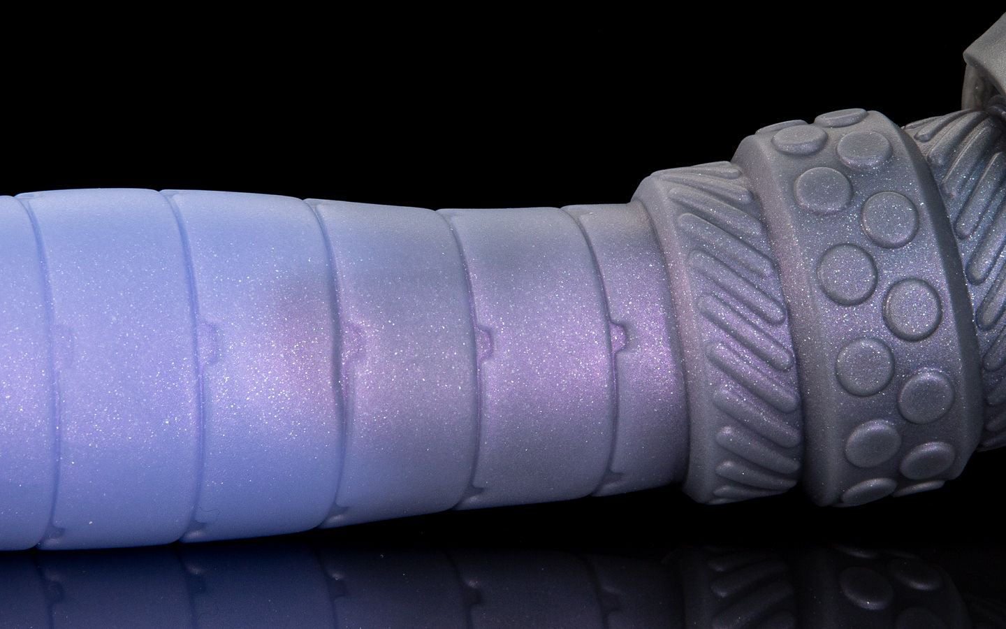 A translucent bluish shaft, with a light metallic shine.