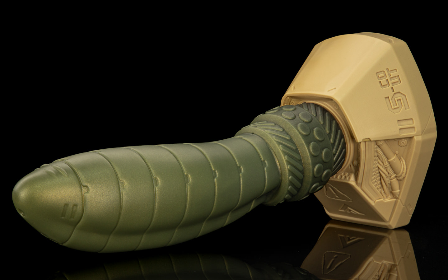 Milo worked methodically; removed the blanking plate from Scout’s ventral port, routed the purpose-built cables - power, data, hydraulic lines. As each connection seated, the shaft responded in stages, first a cyan glow traveling up the length, then internal coils warming it against Milo’s gloved paws. Then, a distinct flex and pulse when the last hydraulic quick-connect snapped home. It was kind of uncanny - despite looking obviously synthetic, it had an organic feel to it. The lynx felt an unexpected heat bloom between his legs.