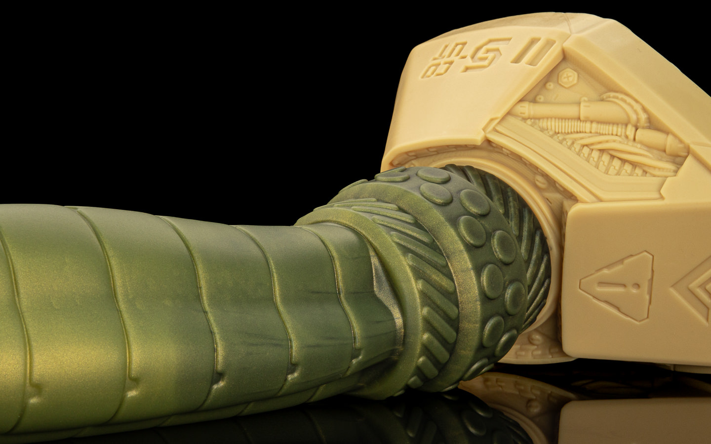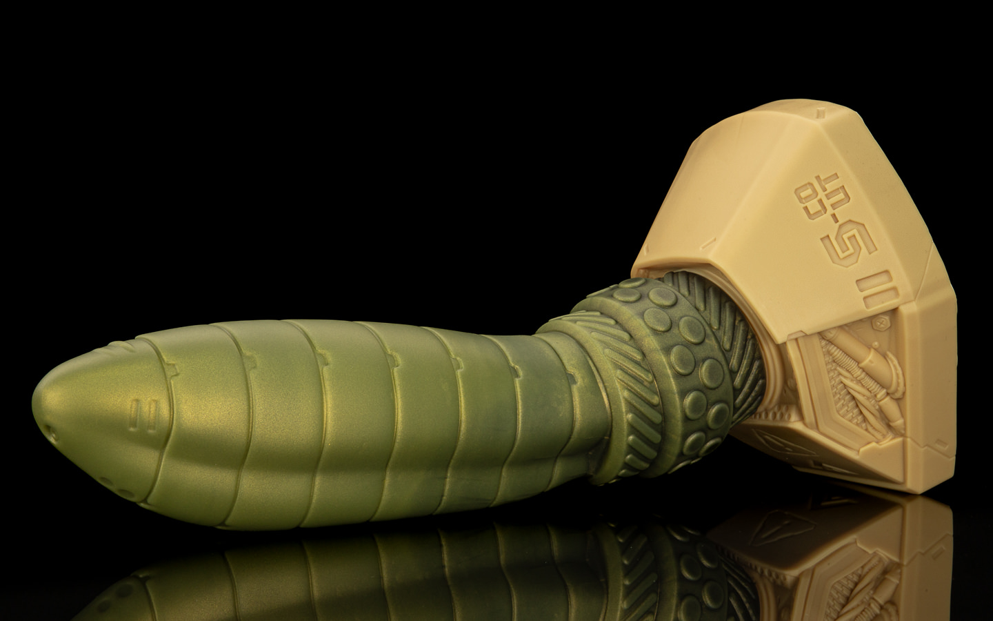 Milo worked methodically; removed the blanking plate from Scout’s ventral port, routed the purpose-built cables - power, data, hydraulic lines. As each connection seated, the shaft responded in stages, first a cyan glow traveling up the length, then internal coils warming it against Milo’s gloved paws. Then, a distinct flex and pulse when the last hydraulic quick-connect snapped home. It was kind of uncanny - despite looking obviously synthetic, it had an organic feel to it. The lynx felt an unexpected heat bloom between his legs.