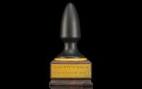 We wanted this toy to be as accurate as possible, so our production staff have gone above and beyond; the “plug”, plaque and gold ring are all poured separately from black and gold silicone, then the base is poured using a black and brown swirl to emulate wood texture. In person, it hardly even looks like its entirely silicone until you pick it up.