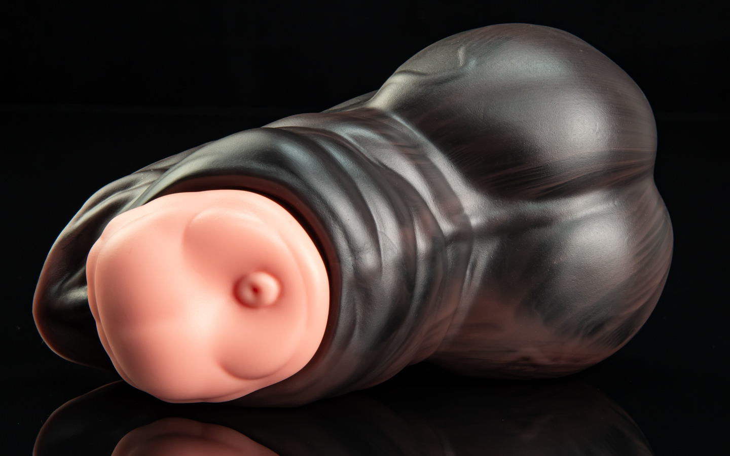 A: Both the core and the sheath itself are made from the same silicone as our penetrables – very soft, very pliable. Silicone can tear no matter what shape it’s in, so be careful with the more delicate parts of the sheath, especially around its opening! Don’t bite or overstretch it, and keep sharp/pointed objects away.